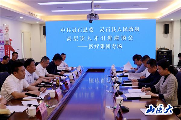 5月21日,校长解军,校党委副书记彭月兰赴灵石县参加高层次人才引进座谈会(医疗集团专场),并签订校县合作框架协议。会上刘斌奇副县长介绍了灵石县医疗卫生发展和医疗人才引进待遇情况,韩军书记做了重要讲话,我校彭月兰介绍了学校基本情况。