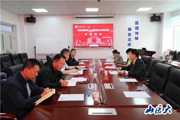 近日,校党委副书记王宏伟深入药学院开展青年人才摸底及未来发展情况专题调研,人才工作部、人事部、教务部、科学技术部、计划财务部、研究生学院负责人、药学院领导班子成员、青年潜力人才目标人选参加调研。党委人才工作部部长蔡蕊主持调研会。