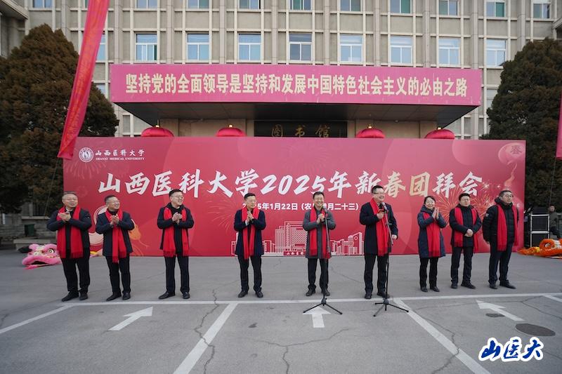 福蛇迎春,瑞气盈途。1月22日上午,学校在迎泽校区举行2025年新春团拜会。全体校领导,第一临床医学院(第一医院)、第二临床医学院(第二医院)领导,离退休老领导、老同志,曾在学校工作过的领导同志,各部门、各单位负责人,广大教职医护员工及学生代表等欢聚一堂、共贺新春。校党委书记王军致新春贺词,校长解军主持新春团拜会。