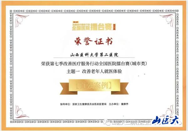 近日,我校第二医院作为老年友善医院,以“畅通绿色通道 方便老年人就医”为题的案例,参与第七季改善医疗服务行动全国医院擂台赛,荣获“百强案例”。